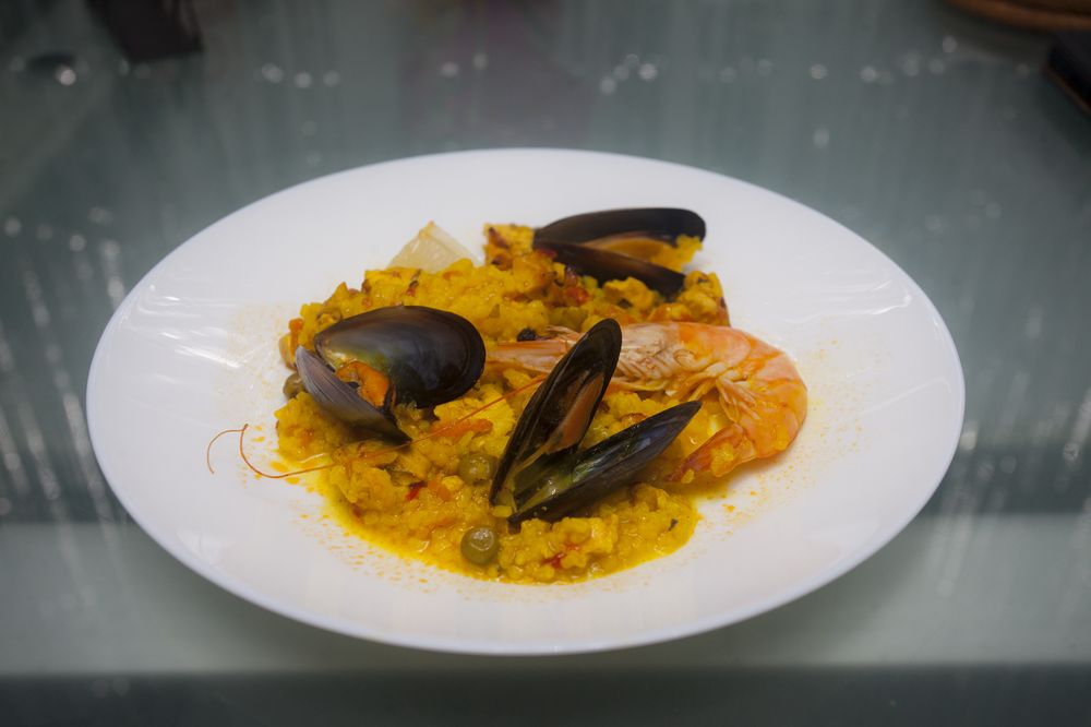 Mixed paella with chicken and seafood.